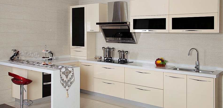 3、橱柜颜色搭配:不锈钢橱柜的颜色一旦选定,将奠定整体空间的主色调,所以要注意与台面、墙面、地板、吊顶的颜色搭配。蔚蓝色的不锈钢橱柜有着天空般的纯净和美好,有着干净柔和的美,用在厨房装修中,让油烟缭绕的厨房也干净通透起来。白色亮面厨房橱柜干净优雅,而且十分容易擦洗,玫红色的厨房墙面光鲜靓丽,两者搭配在一起一款简约时尚的厨房应运而生。明亮的黄色不锈钢橱柜充满青春的活力,让整个厨房空间里都充满阳光与激情的味道,和浅蓝色的厨房墙面搭配在一起,更显干净明亮,白色的墙壁上黑色的花纹为整个厨房的装修增添了别样的韵味。