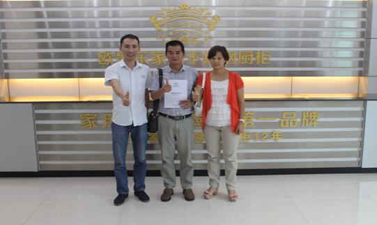 张总原本在深圳做美发行业,自从接触到东莞欧景乐不锈钢橱柜后,被此产品所深深吸引,经过多次对各大橱柜品牌的了解考察后,决定加盟欧景乐不锈钢橱柜。并且坚信,2016年不锈钢橱柜行业将会成为了主流的热门行业。也了解到,不锈钢橱柜在整个橱柜行业占优势在于,舒适化、安全化、美观化、健康化、整体化等,因为在设计方面,主要围绕市场需求而专门研究出来的。深信欧景乐不锈钢橱柜会给他带来事业的又一高峰。